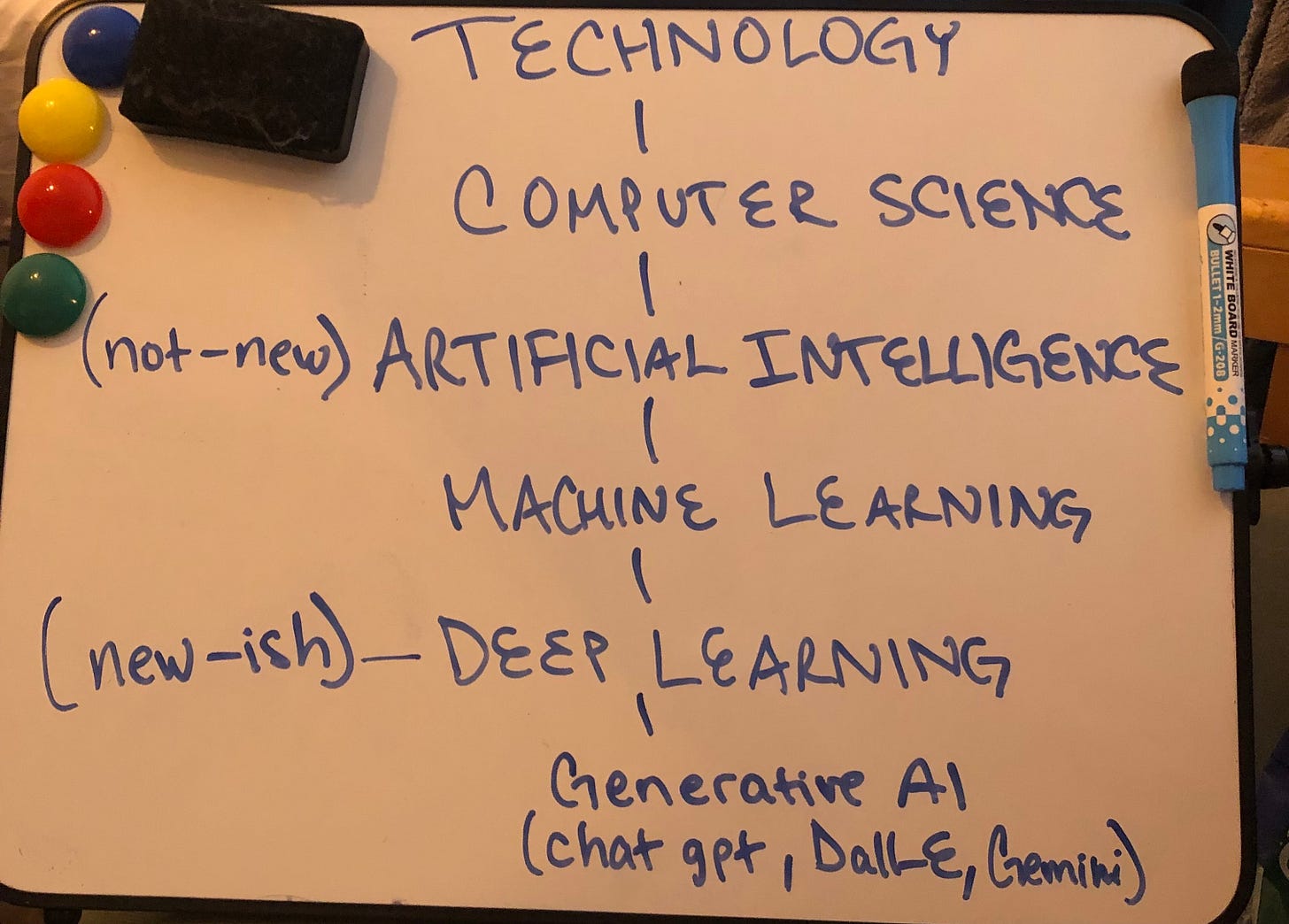 AI is not new, it’s a subset of computer science. Generative AI is new; that’s the AI you keep hearing about. Chatbots like Chat GPT or the creepy AI art like Dall-E and Midjourney.