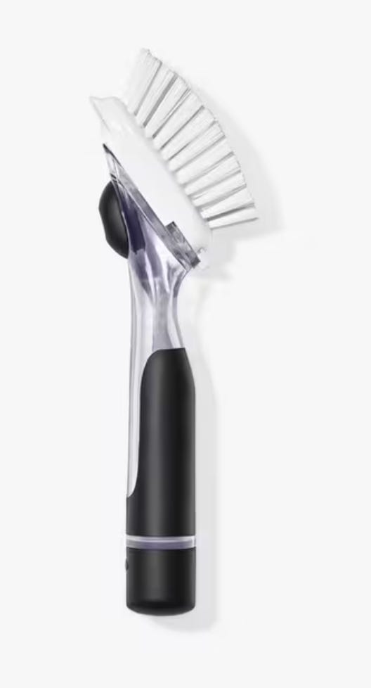 This thing can be filled up with dish soap and then you can wash dishes really easily. I’m finding little quick cheats like that are helping me, I used to forget to unload the dishwasher (I recognize I have dishwasher privilege) for ages and then I wouldn’t have any forks, now I just wash the thing immediately after I eat and let it air dry. If it were up to me my counters would have nothing on them, not even appliances, but I’m trying to accept that homes inevitably look lived in when a human (and cat) live in them.
